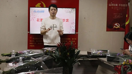 活动在花的芬芳中拉开帷幕。夏松老师为大家讲授了选花、养护、颜色搭配、造型等艺术插花技巧,还讲解了各种花所蕴含的花语和祝福。